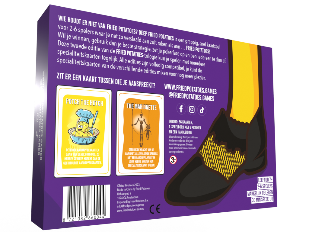 De tweede editie van de Fried Potatoes Trilogy met zes gloednieuwe specialiteitskaarten. Overleef jij je vrienden en familie? Maak je klaar om je tegenstanders te frituren in dit enorm snelle interactieve slagenspel! In de wereld van Fried Potatoes geldt: Hoe gefrituurder ze zijn, hoe meer macht ze hebben. Spannend!